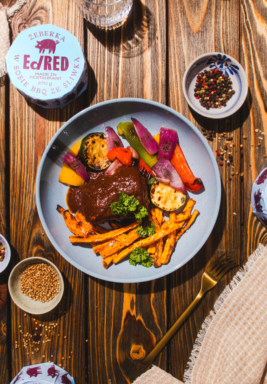 Żeberka w sosie BBQ ze śliwką