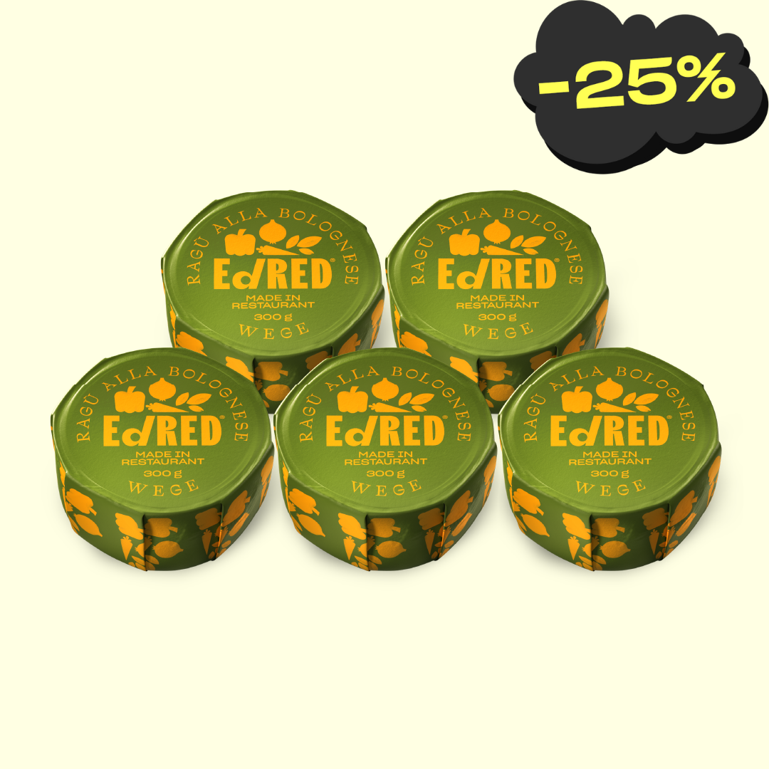 Ragu alla Bolognese Wege - wege danie w puszce premium, inspirowane klasycznym Bolognese. Białko grochu zastępuje mięso, nadając sosowi wyjątkową konsystencję i głębię smaku. Gotowe danie bez konserwantów ze śródziemnomorskimi przyprawami, czerwonym winem i oliwą extra virgin. Wegetariańskie gotowe danie dla miłośników włoskiej kuchni!